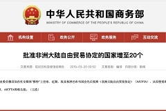 非洲大陸自由貿(mào)易協(xié)定 使批準(zhǔn)該協(xié)定國家數(shù)量增至20個