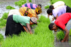 陳華林和專家們來到這個村,坦桑尼亞coc清關(guān)教當(dāng)?shù)厝朔N地。陳華林和專家們拿長線當(dāng)標(biāo)尺,每約16.5厘米畫上一個刻度,將長線在田里細(xì)細(xì)拉直,給坦桑尼亞農(nóng)民示范按照間距插秧。又動員他們挖水塘,積水來對抗干旱。