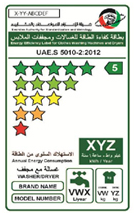 ESMA2011413日頒布實施國家能源效率和保護計劃(EESL)。依據該計劃,ESMA2011年開始,先后將空調、洗衣機、冰箱納入EESL的管控范圍。所有在管控范圍內的產品,都必須通過產品測試以獲取能效證書,并加貼能效標簽(如左圖),方可進入阿聯(lián)酋市場。