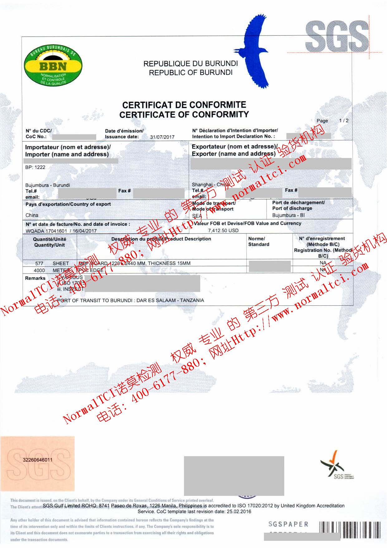 In order to help Chinese enterprises enter the Burundi market quickly and at low cost, NormalTCI Nomo Testing (contact number 13486111918) will provide the most reasonable scheme for different enterprises and different products to quickly obtain the Burundi COC certificate.
