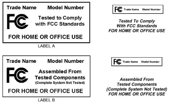 設(shè)備負(fù)責(zé)方(一般為制造商或進(jìn)口商)在FCC指定的合格檢測(cè)機(jī)構(gòu)對(duì)產(chǎn)品進(jìn)行測(cè)試,以確保設(shè)備符合相關(guān)的技術(shù)標(biāo)準(zhǔn)并保留檢測(cè)報(bào)告,F(xiàn)CC有權(quán)要求負(fù)責(zé)方提交設(shè)備的樣品或產(chǎn)品的檢測(cè)數(shù)據(jù)。適用于符合性聲明的設(shè)備包括家用電腦及外設(shè)、民用廣播接收器、超再生接收器、FCC RulePart 15的其它接收器、電視機(jī)接口設(shè)備、電纜系統(tǒng)終端設(shè)備和Part 18 的大眾消費(fèi)者使用的工業(yè)科研和醫(yī)療設(shè)備。負(fù)責(zé)方應(yīng)使設(shè)備上有如下標(biāo)記: