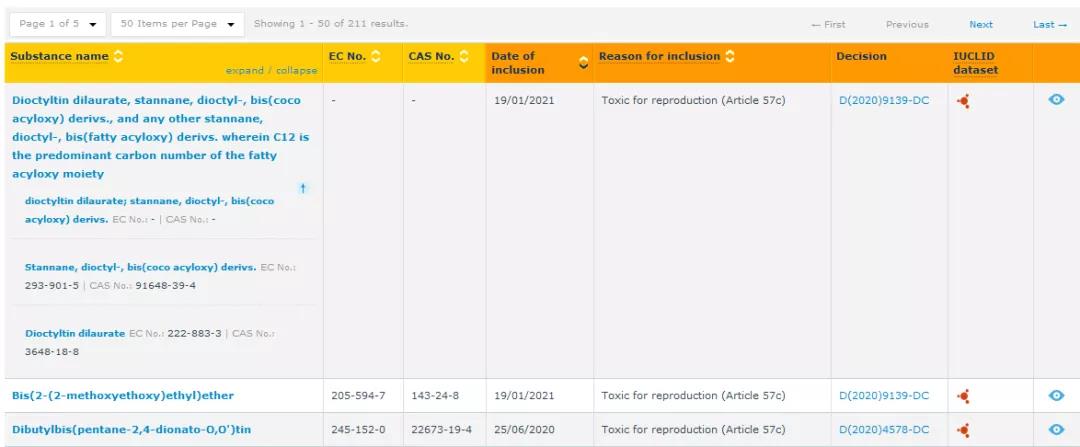 歐盟ECHA正式公布REACH法規(guī)中的SVHC清單為211項(xiàng)