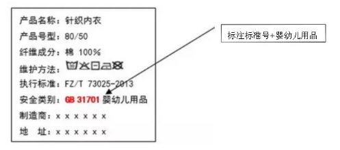●釋義:GB 31701 要求的標(biāo)注方式與 GB 18401 有所不同。GB 18401 只標(biāo)明類別即可,但 GB 31701 要求應(yīng)標(biāo)注標(biāo)準(zhǔn)編號。此處必須引起高度關(guān)注,以免沿用了舊標(biāo)準(zhǔn)的做法。