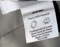 根據(jù)FTC的《護(hù)理標(biāo)簽規(guī)則》,護(hù)理信息必須是由英文書寫的護(hù)理說(shuō)明或ASTM D5489-96c標(biāo)準(zhǔn)中的護(hù)理符號(hào)。無(wú)論是由文字還是符號(hào)組成,護(hù)理說(shuō)明都應(yīng)至少包含四個(gè)洗滌說(shuō)明符號(hào),按洗滌、漂白、干燥和熨燙順序排列。干洗/專業(yè)紡織品護(hù)理說(shuō)明使用一個(gè)符號(hào)。額外的符號(hào)或文字可以用來(lái)闡明護(hù)理說(shuō)明。