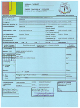 根據(jù)幾內(nèi)亞港務(wù)局要求:針對發(fā)往幾內(nèi)亞的貨物,必須辦理幾內(nèi)亞CTN NO.(貨物跟蹤號碼),否則在起運港船公司無法正常出具海運提單,目的港將無法清關(guān)和提貨。幾內(nèi)亞CTN NO.和尼日利亞CTN NO.類似,CTN NO.是英文Cargo Tracking Note Number的首字母縮寫,意思是貨物跟蹤號碼,又稱為貨物進口清單。